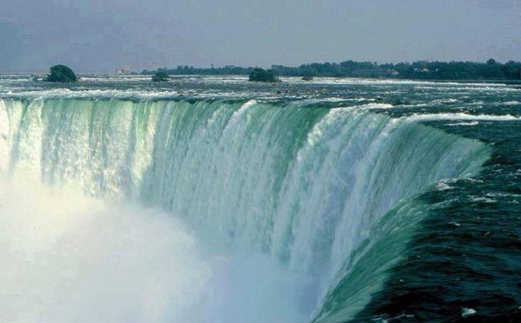 Actual amount varies, there are two hydroelectric plants which draw water into their reservoirs prior to the Falls. Their intake greatly affects the volume of water flowing over the falls The amount of water being siphoned away depends on two variables. The time of year, and the time of the day. Flow is greatest over the Falls in the daytime during peak tourist season (June, July, and August). In the event of an emergency the flow can be somewhat reduced by the hydroelectric companies increasing their intake. The Bridal Veil Falls is named for its appearance. It is located next to the American falls, separated by a small piece of land called Luna Island.